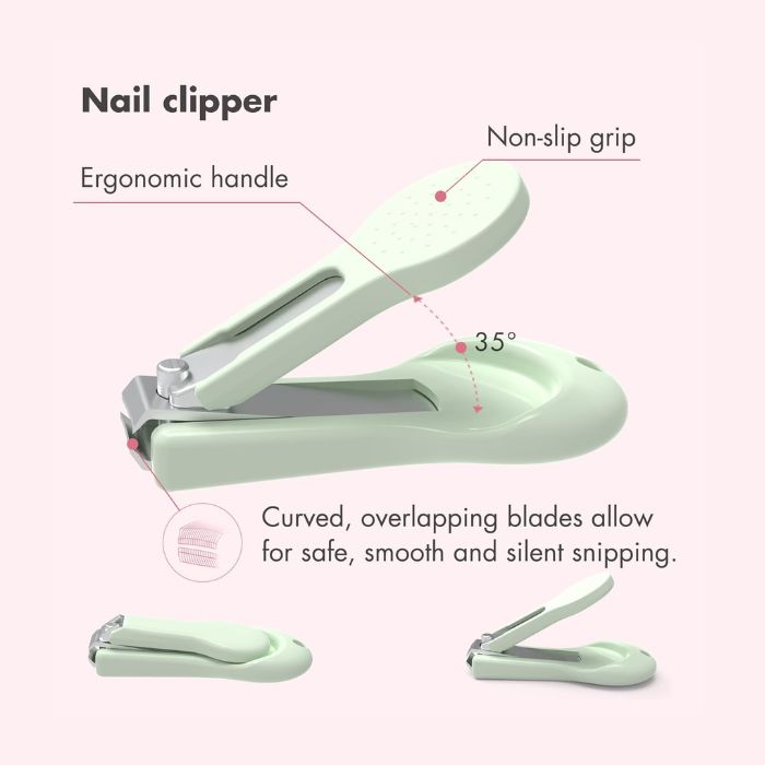 • This isn’t just a nail clipper, but an entire grooming kit that includes a baby nail clipper, non-slip handled baby scissors, soft-tipped tweezers, and a gentle glass nail file that won’t shred nails or hurt the skin around them. It comes with a protective and adorable case. This baby manicure set is one of the safest and easiest-to-use options available in the market right now.